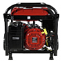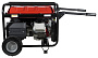 Генератор оснащен электрическим запуском, аккумулятором, удобными складными ручками и колесами, системой контроля уровня масла, системой AVR.