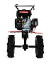 Регулировка руля управления мотокультиватора осуществляется в вертикальной и горизонтальной плоскостях, это позволяет адаптировать мотоблок на колёсах под различные виды работ и делает его использование ещё более удобным. А компактные размеры и небольшой вес мотоблока, облегчает его транспортировку и хранение.